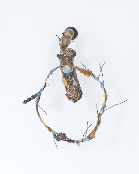 2022–2023, Cattails, ceramic, construction adhesive, Dior lipstick,epoxy,glitter,hardware, moisturizing face mask, natural waxes, oil paint, phosphorescent acrylic, pigment, pomade, sand, shellac, silicone, silicone rubber, soot, synthetic paint brush bristles, tennis ball felt, wasp nests